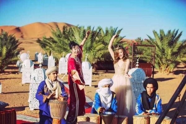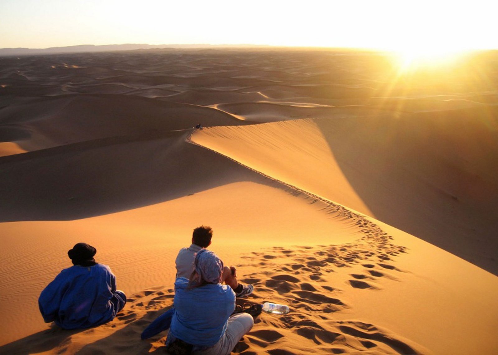 Após o café da manhã, você explorará as pequenas cidades do deserto de Erfoud e Rissani, onde fará uma parada para almoço. À tarde, você dirigirá em veículos 4×4 pela terra árida até as majestosas dunas de areia do Saara Merzouga. Tomaremos chá depois de iniciarmos o campo deserto, onde nos aguardam nossos dromedários, atravessamos as dunas até o coração do deserto para assistir a um lindo pôr do sol. Escondido atrás das Grandes Dunas, e apreciando a música dos nómadas, o jantar e o chá marroquinos, é possível avistar o vasto céu estrelado. Jantar e dormir no deserto KASBAH em Merzouga.