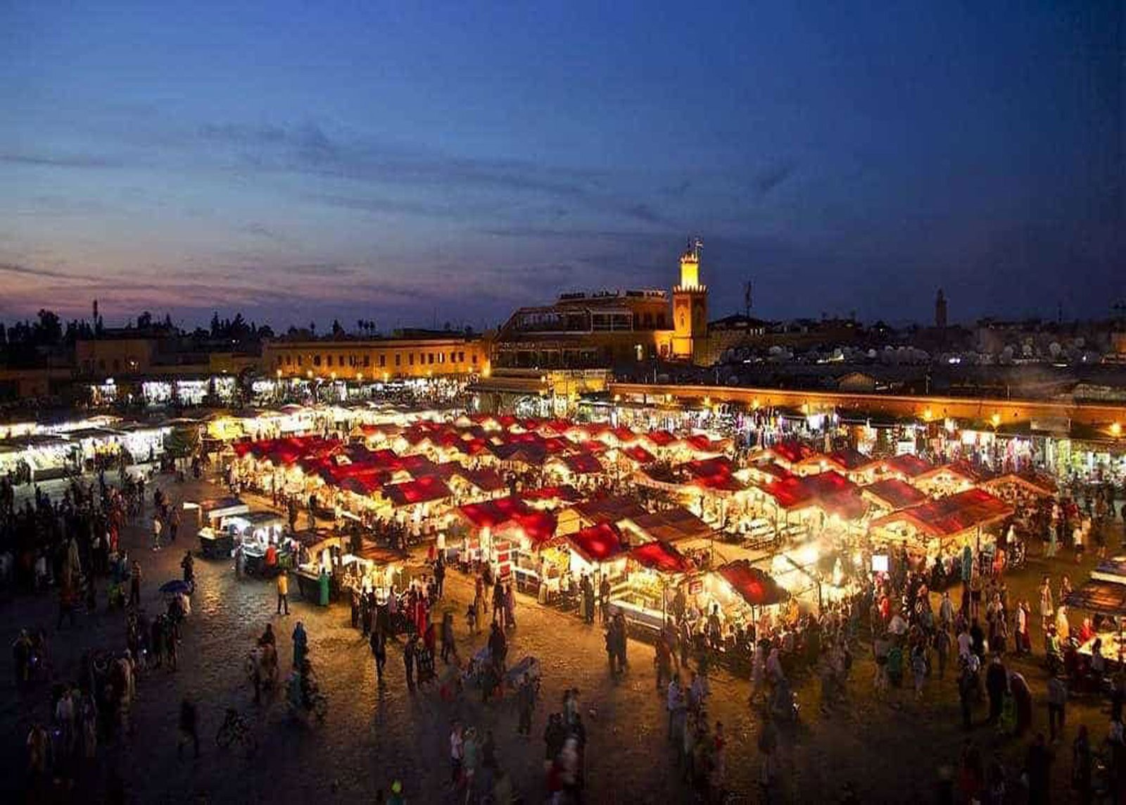 Após o café da manhã, você passará o dia inteiro com guia particular para visitar Marrakech, “conhecida também como a “cidade vermelha” por seus edifícios de tijolos de barro vermelho. Fundada pela dinastia Almorávidas no final do século XII, a cidade está situada no coração de um palmeiral e rodeada de impressionantes montanhas”. Passe a manhã descobrindo os souks e a praça Djemaa El Fna, um mercado durante o dia e local de um interminável desfile de artistas e artistas à noite. Após o almoço no hotel ou restaurante, visite os Túmulos Saadianos, o Museu de Artes Marroquinas localizado em Dar Si Said, os jardins da cidade de Menara e Agdal, a torre Koutoubia e, finalmente, o Palácio da Bahia. À noite você tem a opção de jantar em um restaurante típico marroquino com show de folclore. Noite em Riad ou hotel.