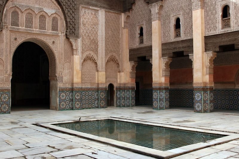 Após o café da manhã, o grupo fará uma visita guiada privada em Marrakech, a pérola do sul de Marrocos. Você descobrirá o Palácio da Bahia, as Tumbas Saadianas e muitos outros tesouros escondidos. Após o almoço, você continuará com o passeio até a magnífica Mesquita Koutoubia e a famosa Djemaa el-Fna, uma das principais atrações de Marrakech e onde se concentra a vida e as atividades da cidade: dançarinos, contadores de histórias, malabaristas, artesãos, comerciantes e encantadores de serpentes. O passeio terminará com uma exploração do souk (mercado) repleto de frutas frescas, montes de especiarias, tapetes berberes intrincadamente tecidos e muitos outros objetos de arte de Marrocos. O jantar será servido no riad ou hotel.